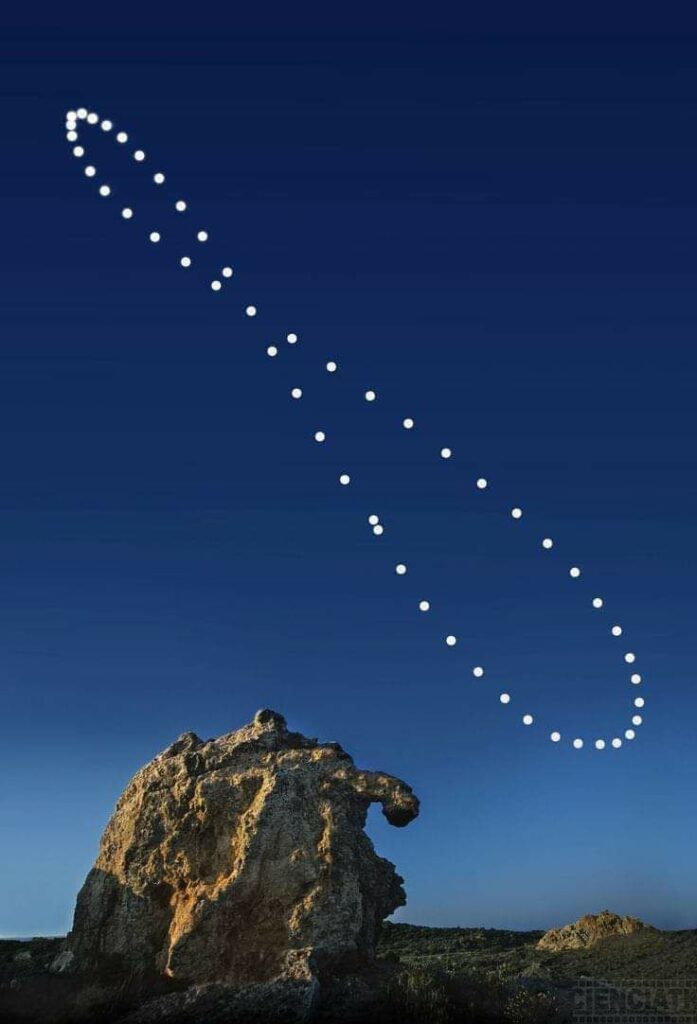 Ако сваког од 365 дана у току једне године, са истог места, у истом тренутку, фотографишете исти кадар на небу, добићете линију која прати облик бесконачности. Ова чудесна, затворена линија која наликује издуженом броју 8 назива се аналема.