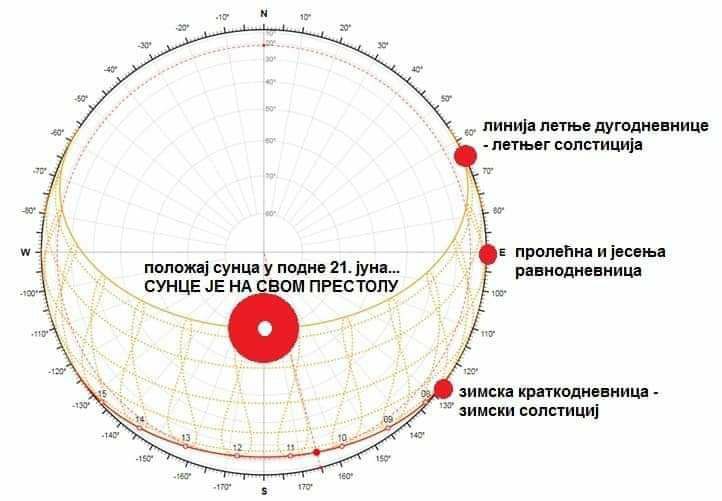 Ако погледамо како изгледа исцртавање годишњег соларног дијаграма кретања Сунца из перспективе човека који стоји на северној земљиној хемисфери, првенствено из Србије, управо добијамо симбол који изгледа као положени млади месец, тј симбол о којем све време причамо. Једино, треба направити разлику између симбола младог месеца и симбола Сунчевог престола, односно годишњег соларног дијаграма.